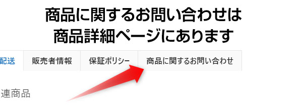 お問い合わせは各商品詳細ページまたは内にある「製品に関するお問い合わせ」を利用する、または、店舗トップページから店舗を選択し、「販売者に連絡をする」からお問い合わせください。
